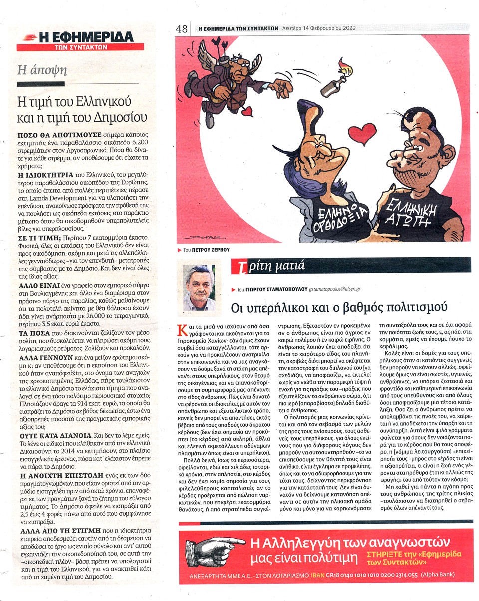 Η ΕΦΗΜΕΡΙΔΑ ΤΩΝ ΣΥΝΤΑΚΤΩΝ - 14 Φεβρουαρίου 2022