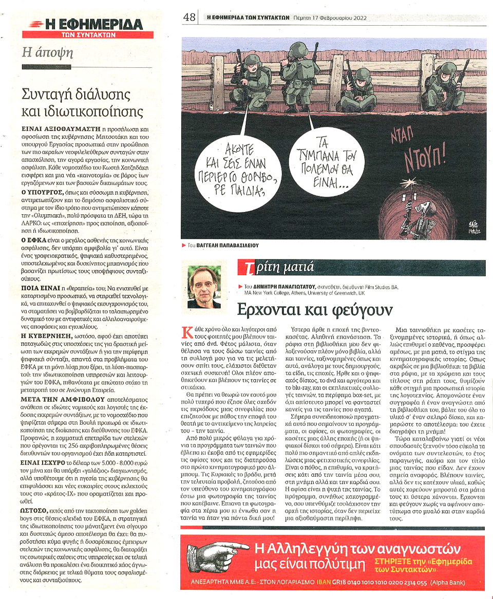 Η ΕΦΗΜΕΡΙΔΑ ΤΩΝ ΣΥΝΤΑΚΤΩΝ - 17 Φεβρουαρίου 2022