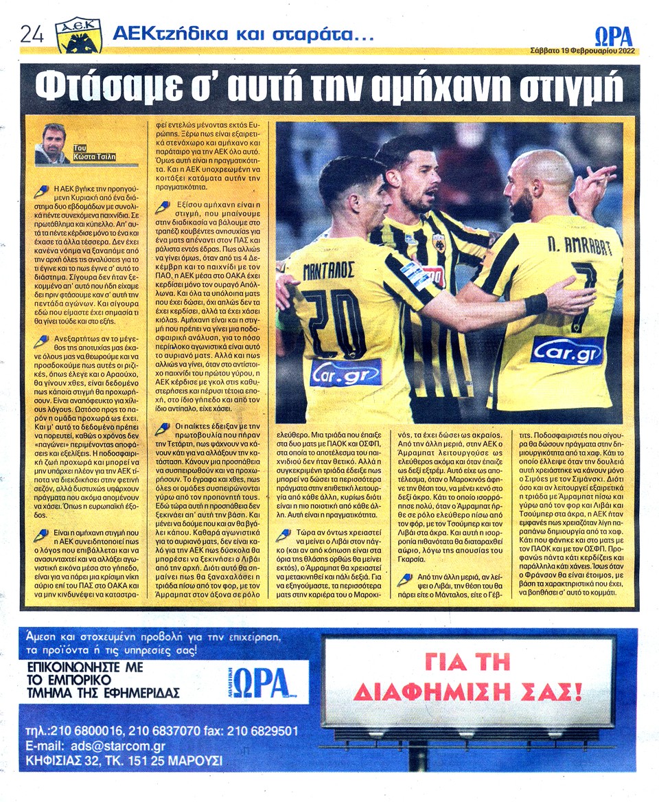 ΑΘΛΗΤΙΚΗ ΩΡΑ ΤΩΝ ΣΠΟΡ - 19 Φεβρουαρίου 2022