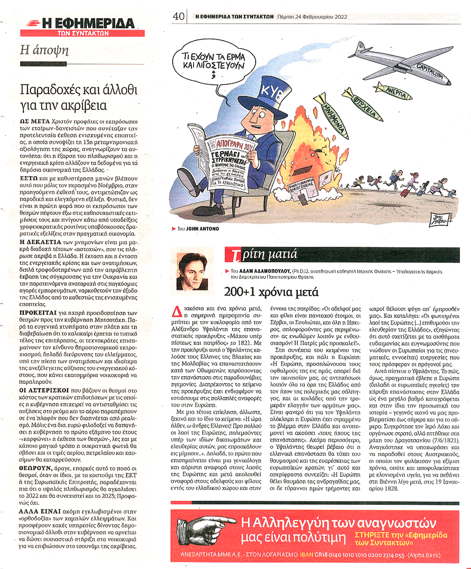 Η ΕΦΗΜΕΡΙΔΑ ΤΩΝ ΣΥΝΤΑΚΤΩΝ - 24 Φεβρουαρίου 2022