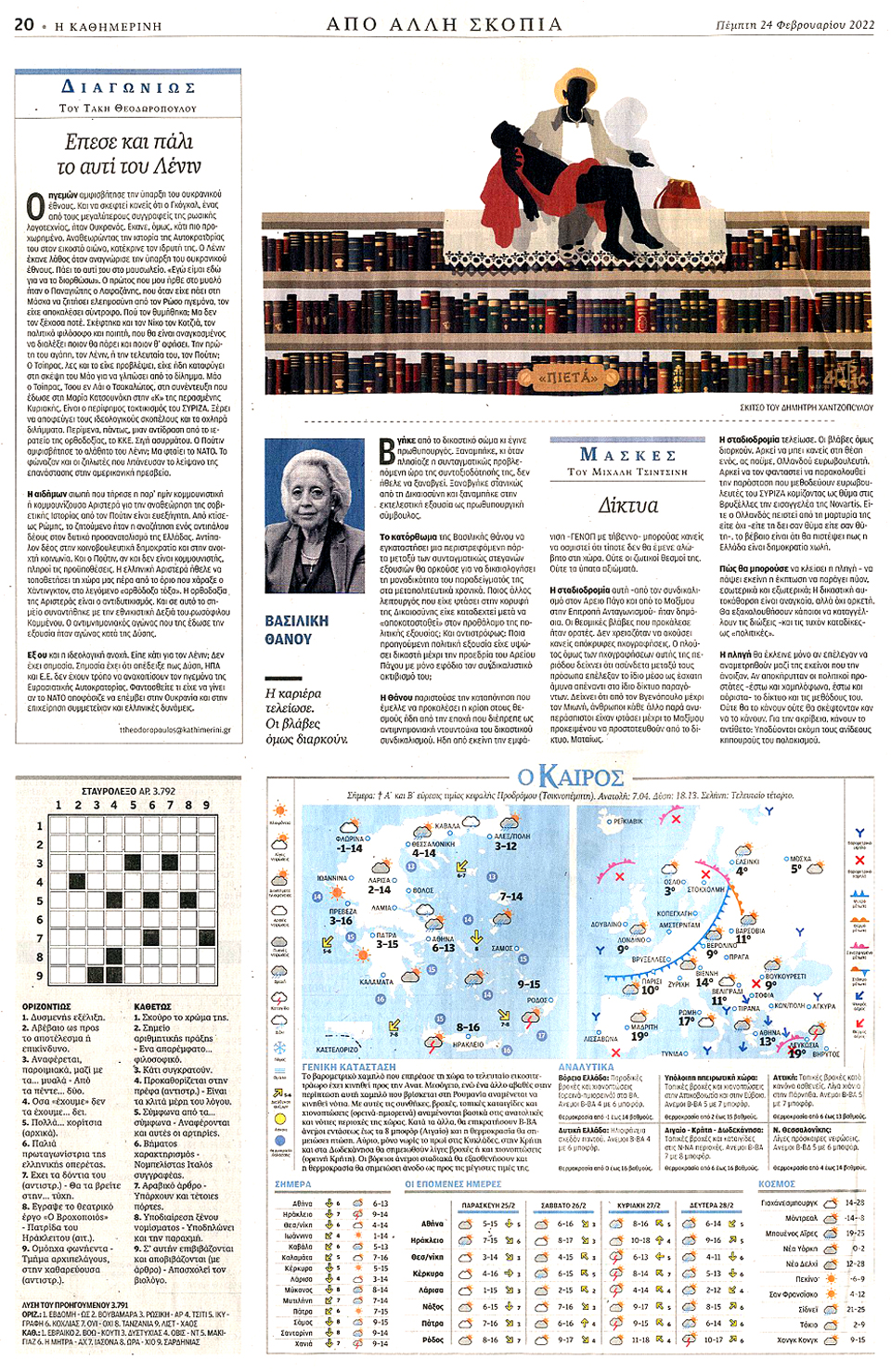 ΚΑΘΗΜΕΡΙΝΗ - 24 Φεβρουαρίου 2022