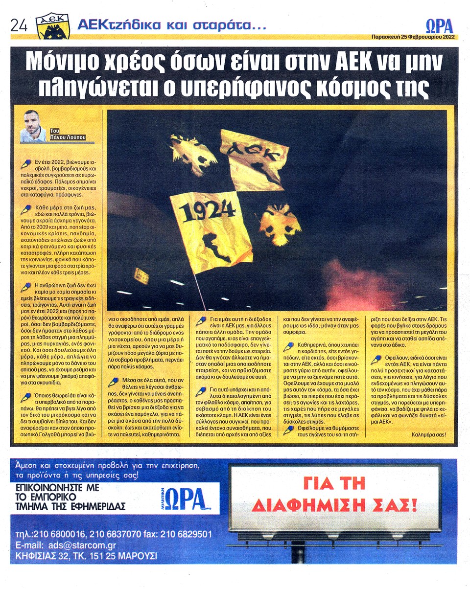 ΑΘΛΗΤΙΚΗ ΩΡΑ ΤΩΝ ΣΠΟΡ - 25 Φεβρουαρίου 2022