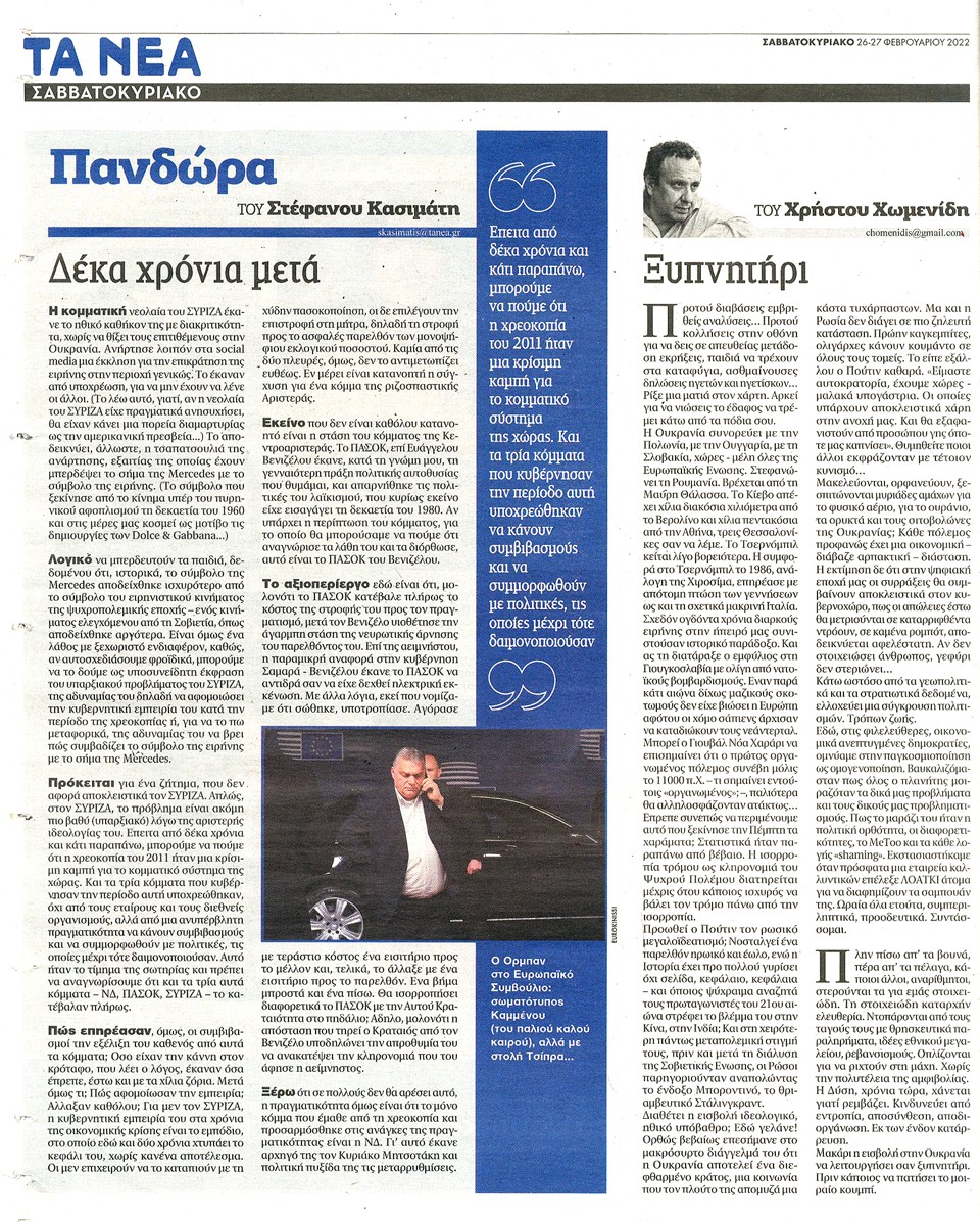ΤΑ ΝΕΑ - 26 Φεβρουαρίου 2022