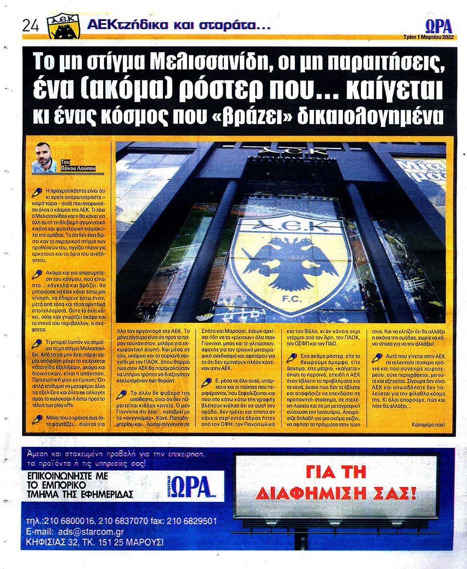 ΑΘΛΗΤΙΚΗ ΩΡΑ ΤΩΝ ΣΠΟΡ - 1 Μαρτίου 2022