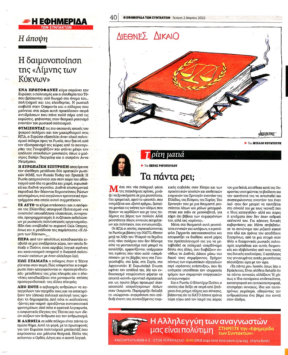 Η ΕΦΗΜΕΡΙΔΑ ΤΩΝ ΣΥΝΤΑΚΤΩΝ - 2 Μαρτίου 2022