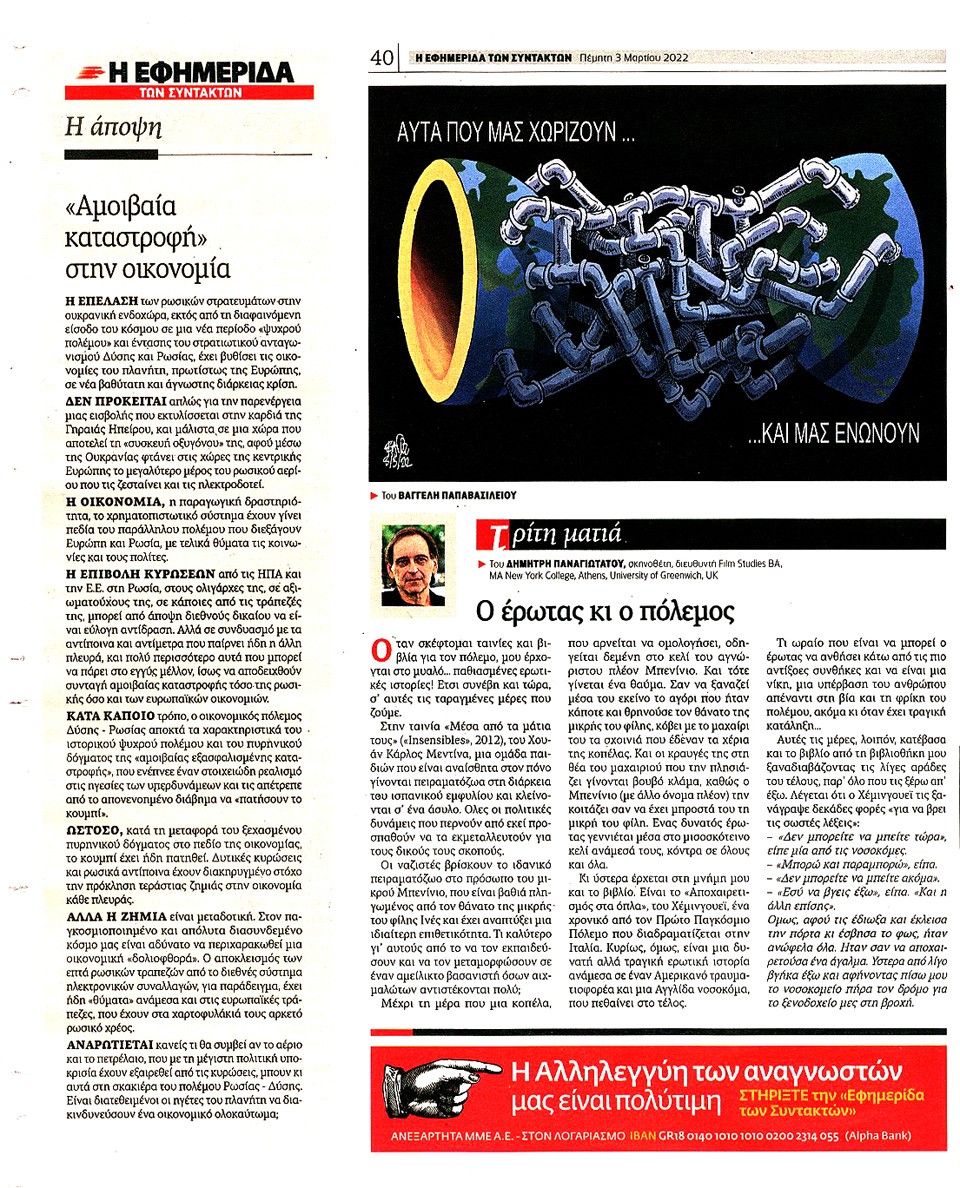 Η ΕΦΗΜΕΡΙΔΑ ΤΩΝ ΣΥΝΤΑΚΤΩΝ - 3 Μαρτίου 2022