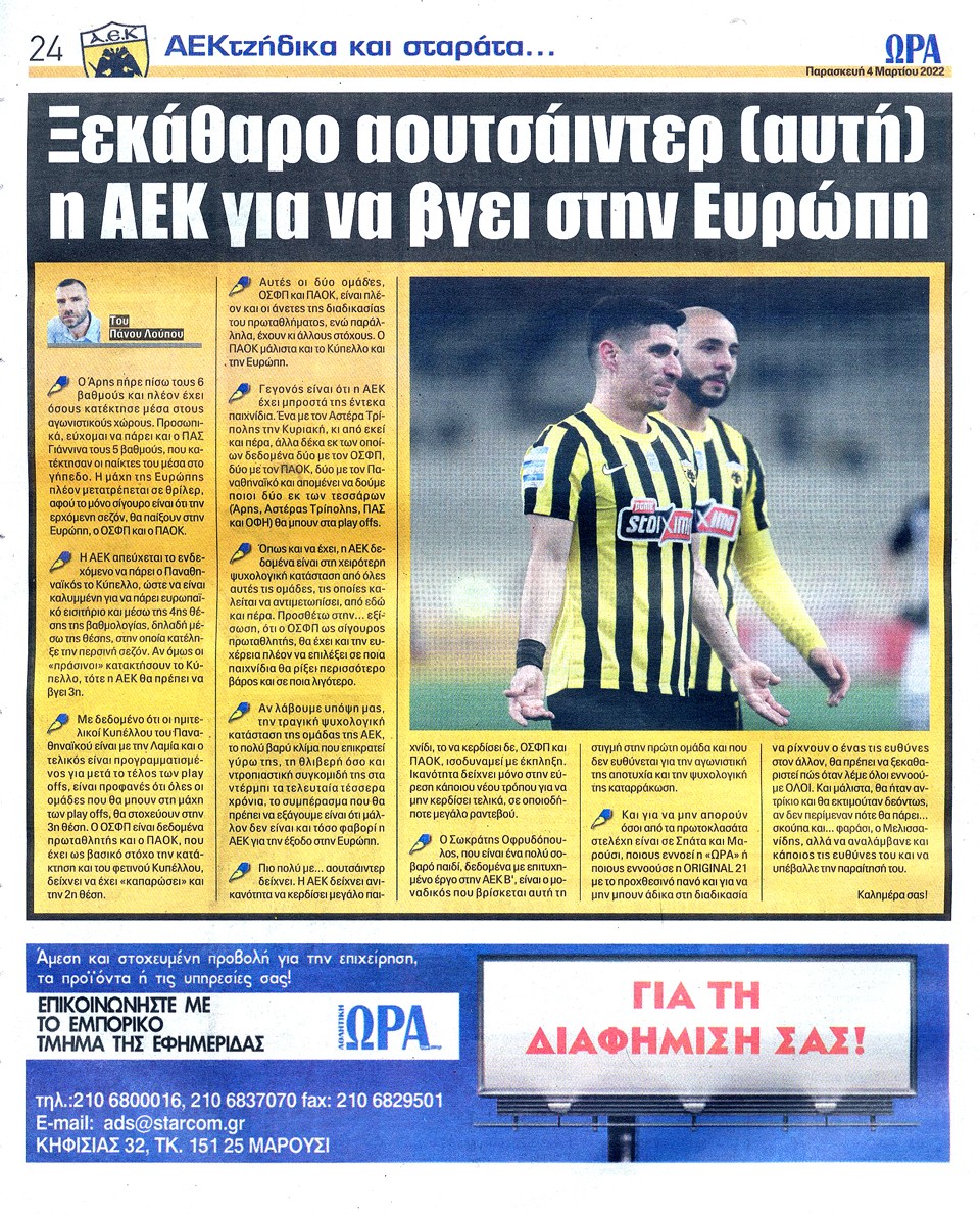 ΑΘΛΗΤΙΚΗ ΩΡΑ ΤΩΝ ΣΠΟΡ - 4 Μαρτίου 2022