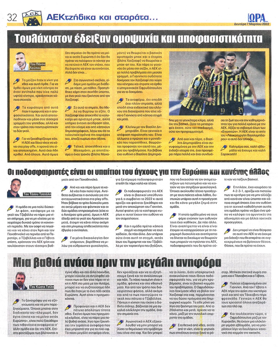 ΑΘΛΗΤΙΚΗ ΩΡΑ ΤΩΝ ΣΠΟΡ - 7 Μαρτίου 2022