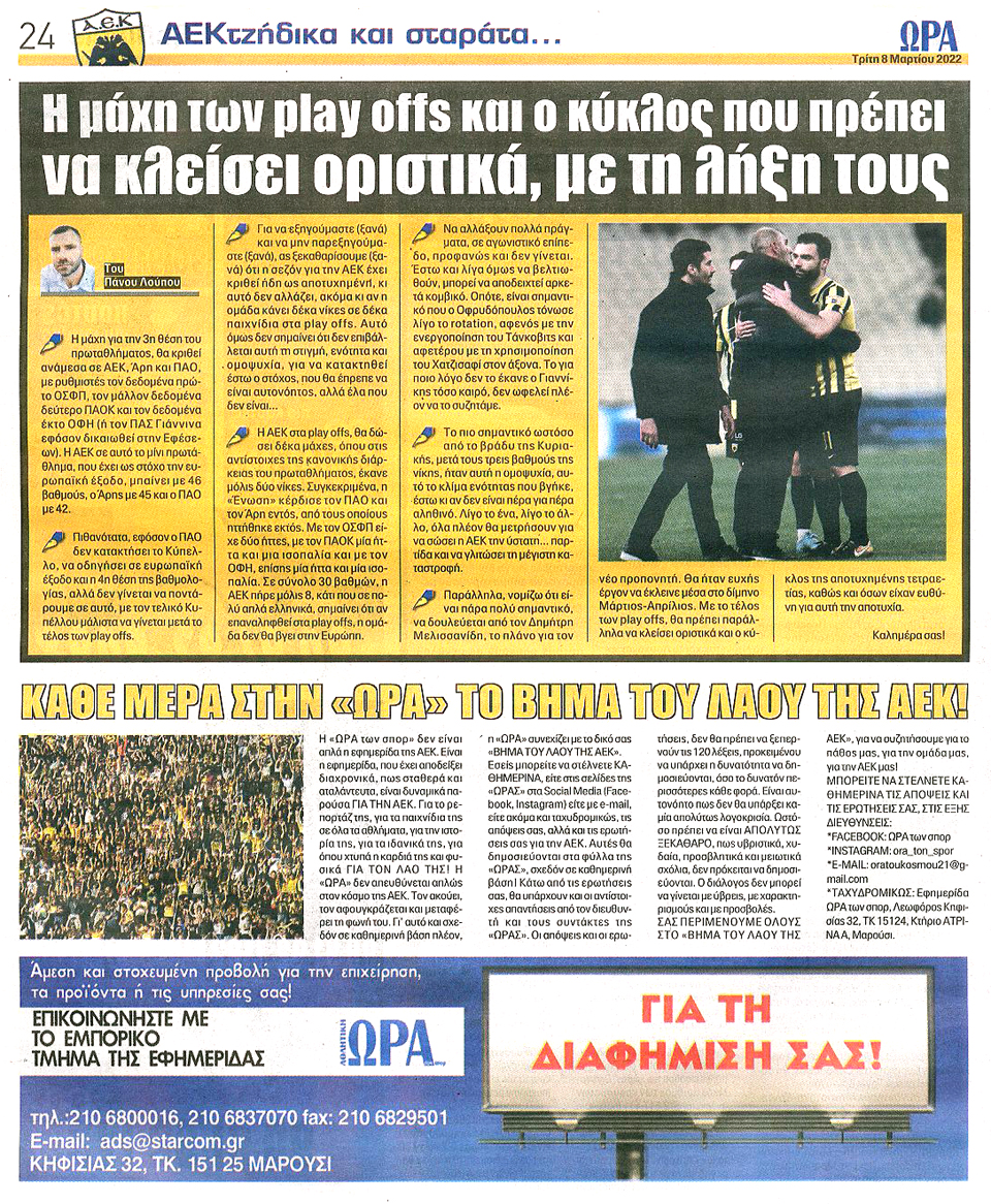 ΑΘΛΗΤΙΚΗ ΩΡΑ ΤΩΝ ΣΠΟΡ - 8 Μαρτίου 2022