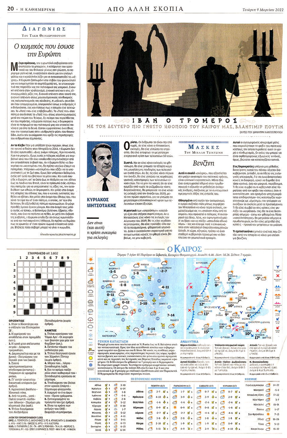 ΚΑΘΗΜΕΡΙΝΗ - 9 Μαρτίου 2022