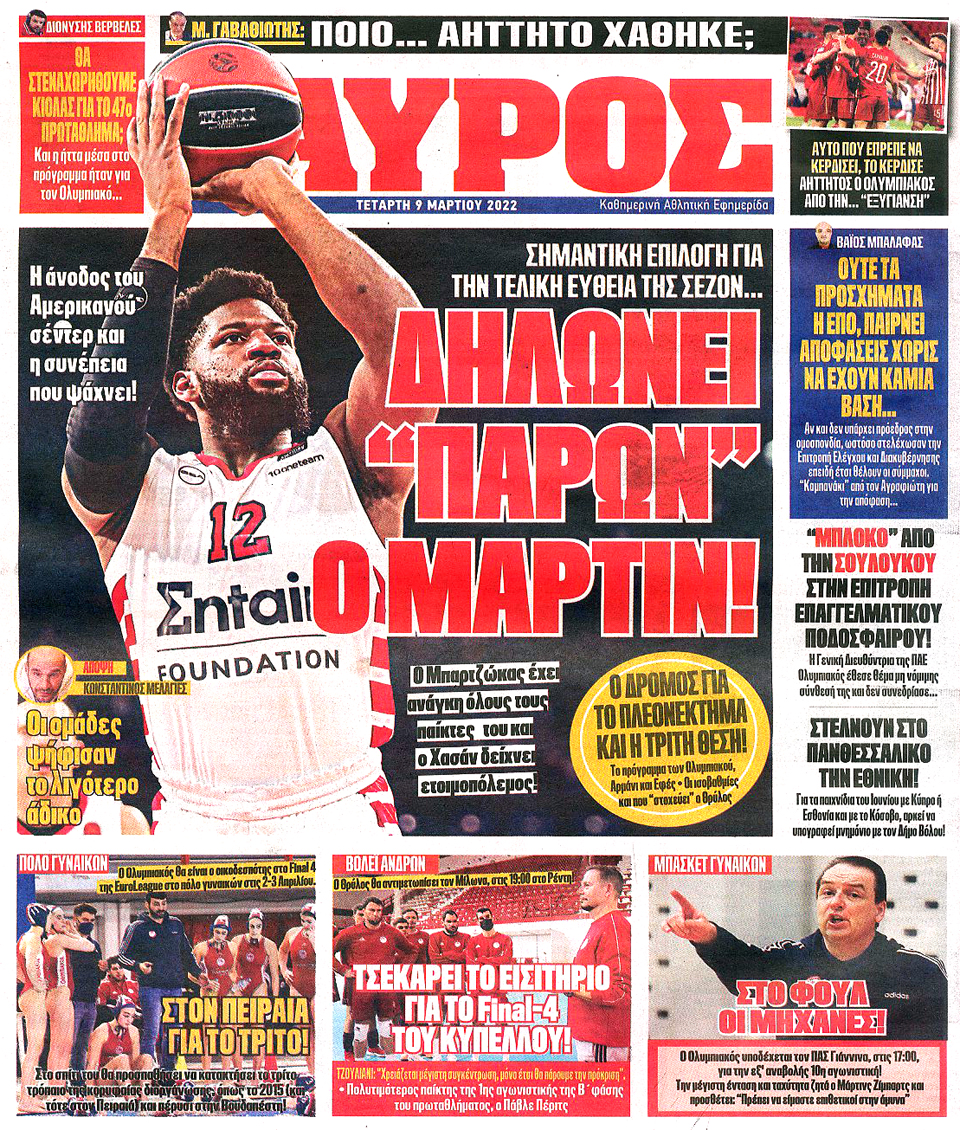 ΠΡΩΤΑΘΛΗΤΗΣ - 9 Μαρτίου 2022