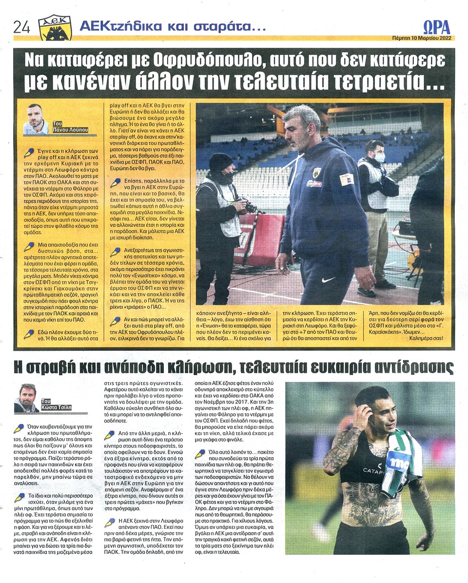 ΑΘΛΗΤΙΚΗ ΩΡΑ ΤΩΝ ΣΠΟΡ - 10 Μαρτίου 2022