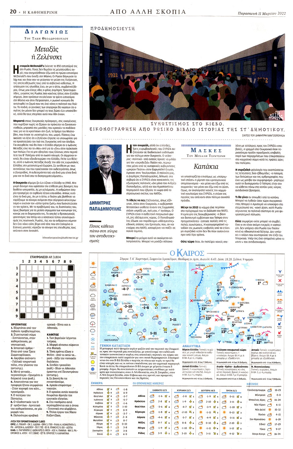 ΚΑΘΗΜΕΡΙΝΗ - 11 Μαρτίου 2022