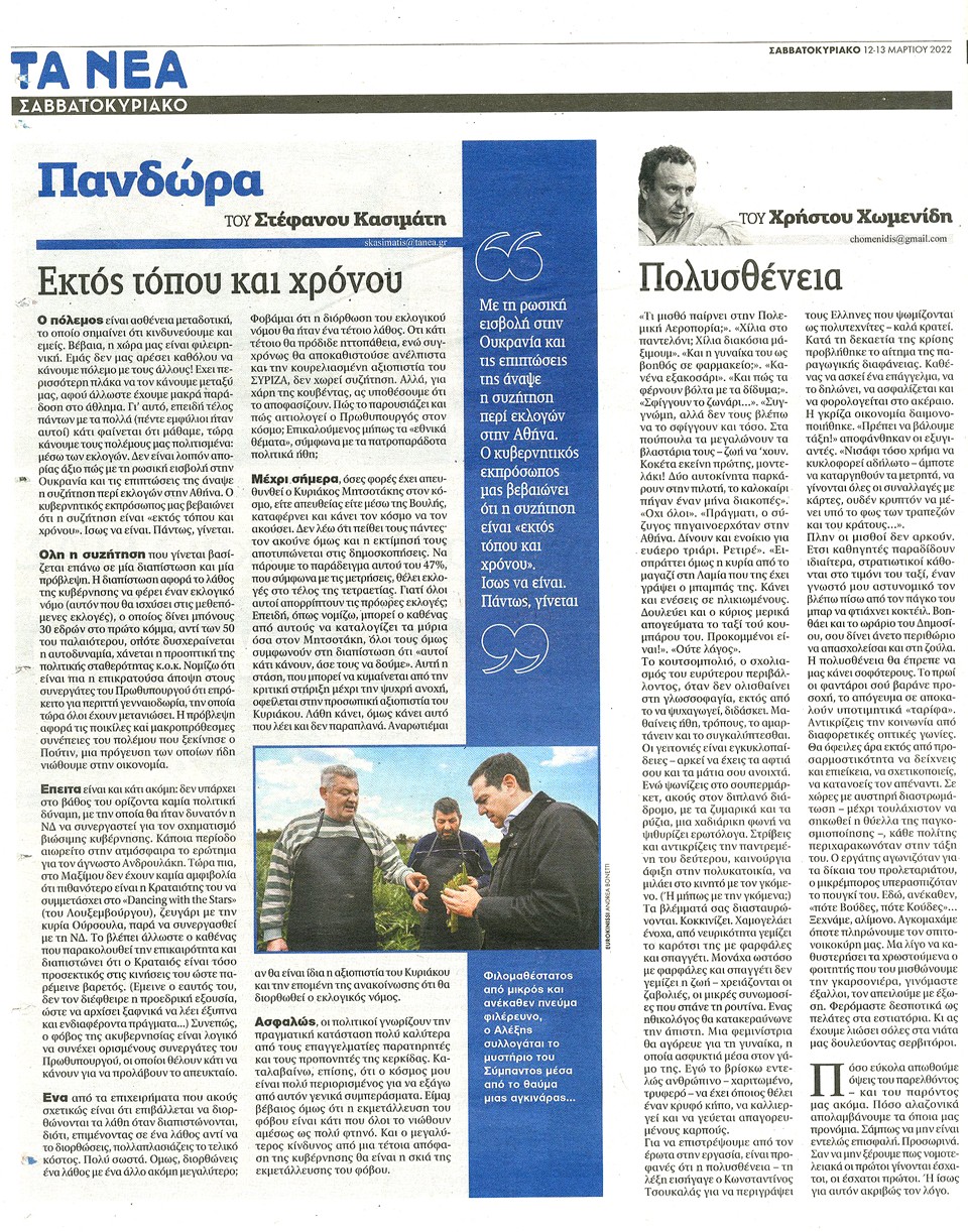 ΤΑ ΝΕΑ - 12 Μαρτίου 2022