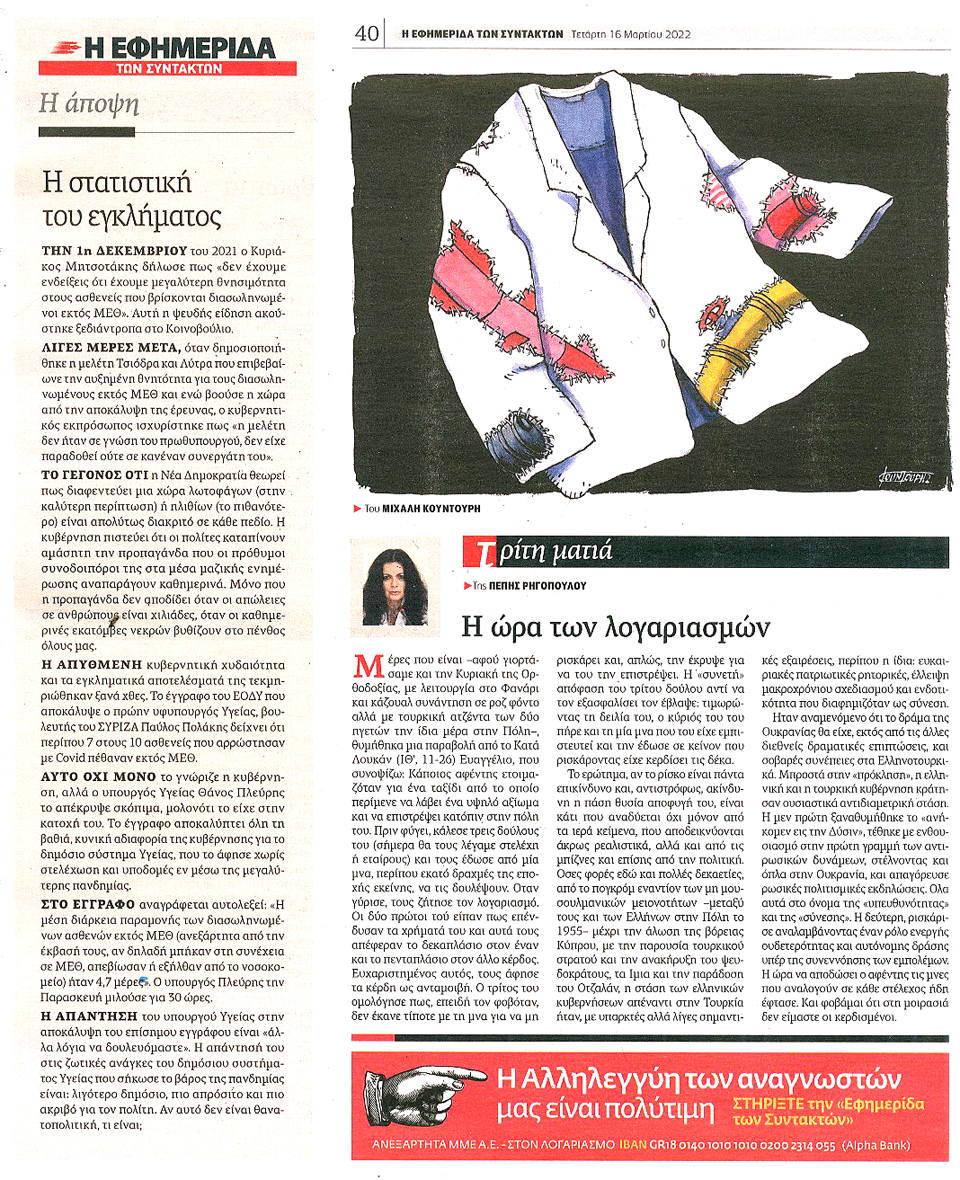 Η ΕΦΗΜΕΡΙΔΑ ΤΩΝ ΣΥΝΤΑΚΤΩΝ - 16 Μαρτίου 2022
