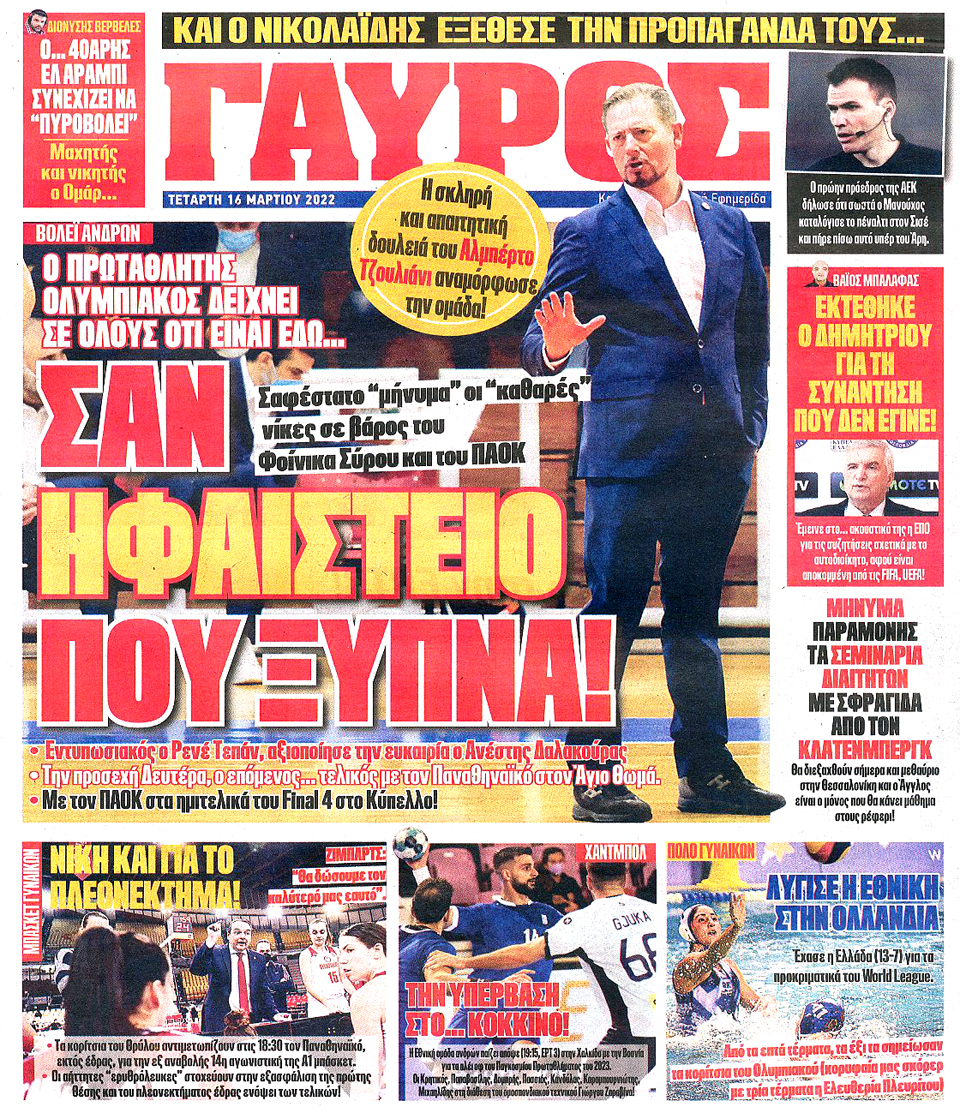 ΠΡΩΤΑΘΛΗΤΗΣ - 16 Μαρτίου 2022