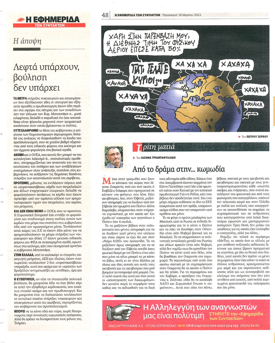 Η ΕΦΗΜΕΡΙΔΑ ΤΩΝ ΣΥΝΤΑΚΤΩΝ - 18 Μαρτίου 2022