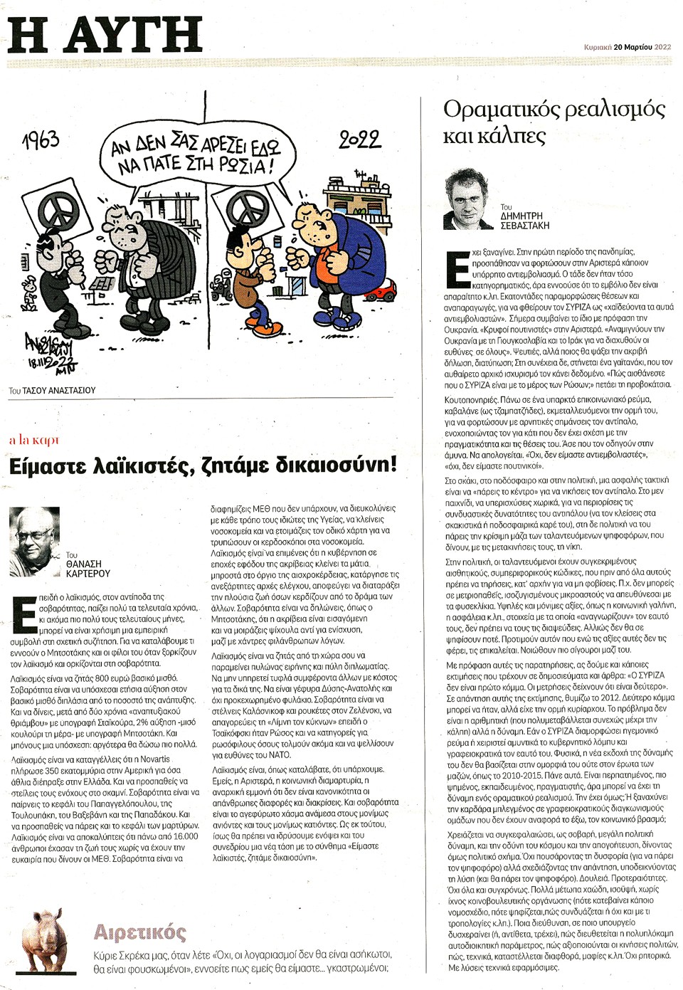 Η ΑΥΓΗ ΤΗΣ ΚΥΡΙΑΚΗΣ - 20 Μαρτίου 2022