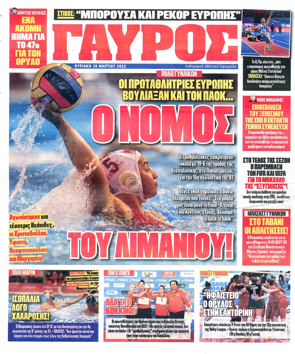 ΠΡΩΤΑΘΛΗΤΗΣ - 20 Μαρτίου 2022
