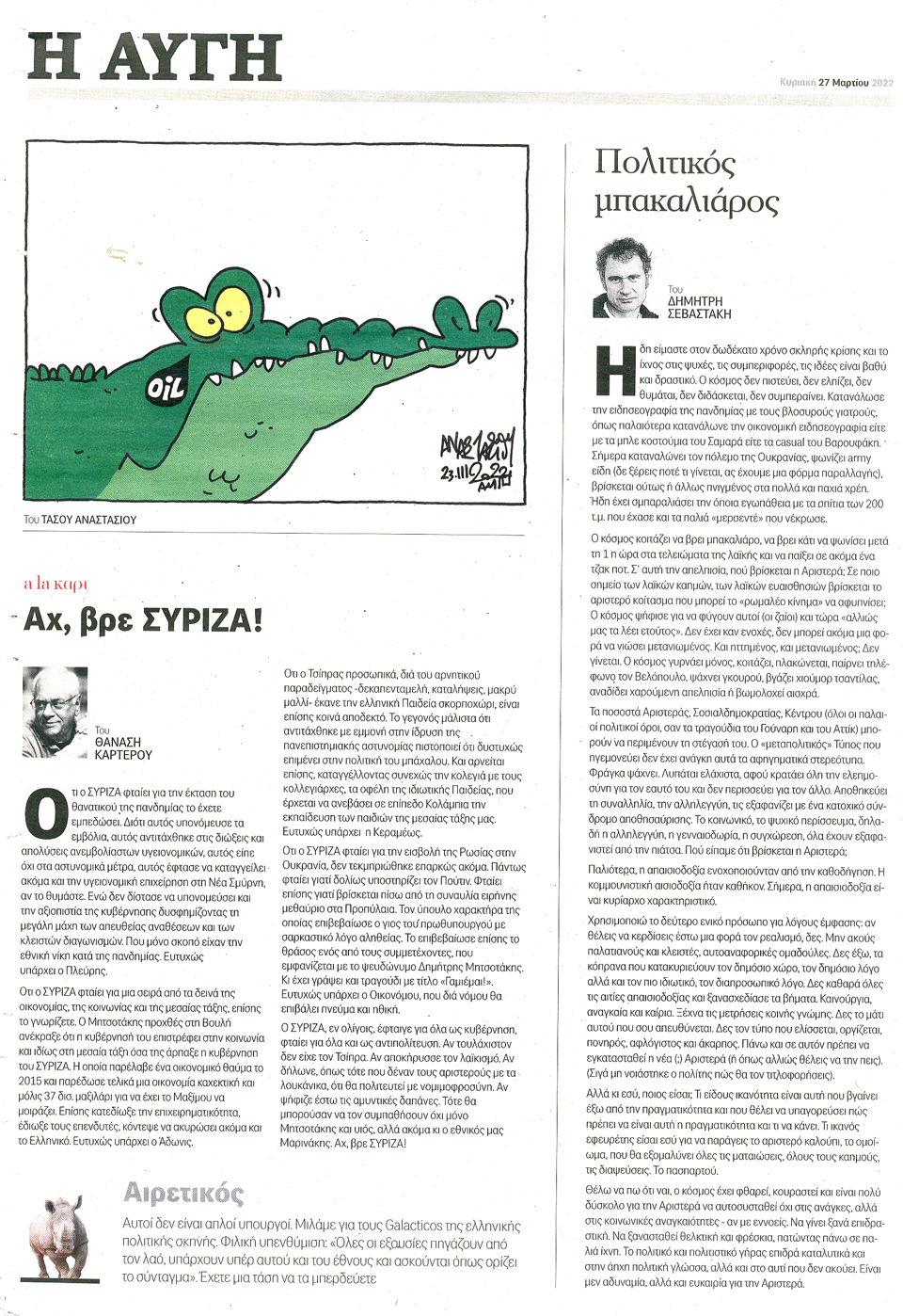 Η ΑΥΓΗ ΤΗΣ ΚΥΡΙΑΚΗΣ - 27 Μαρτίου 2022
