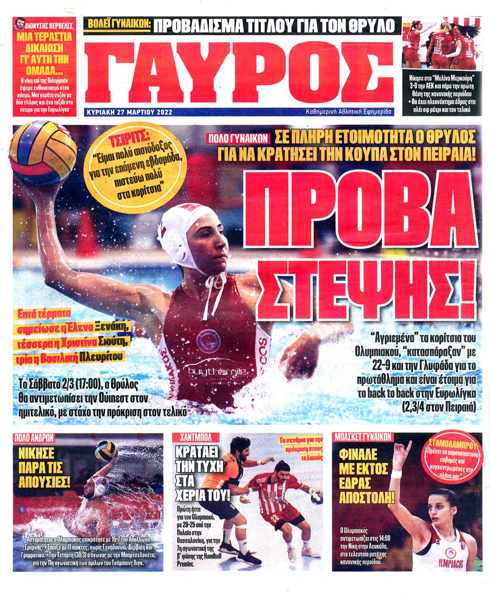 ΠΡΩΤΑΘΛΗΤΗΣ - 27 Μαρτίου 2022