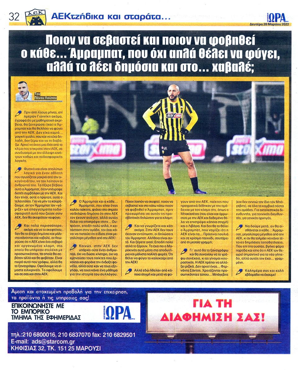 ΑΘΛΗΤΙΚΗ ΩΡΑ ΤΩΝ ΣΠΟΡ - 28 Μαρτίου 2022