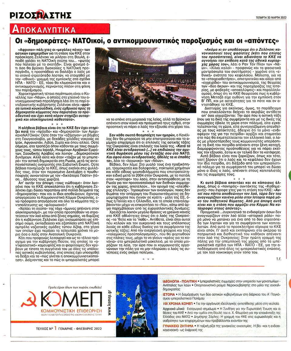 ΡΙΖΟΣΠΑΣΤΗΣ - 30 Μαρτίου 2022