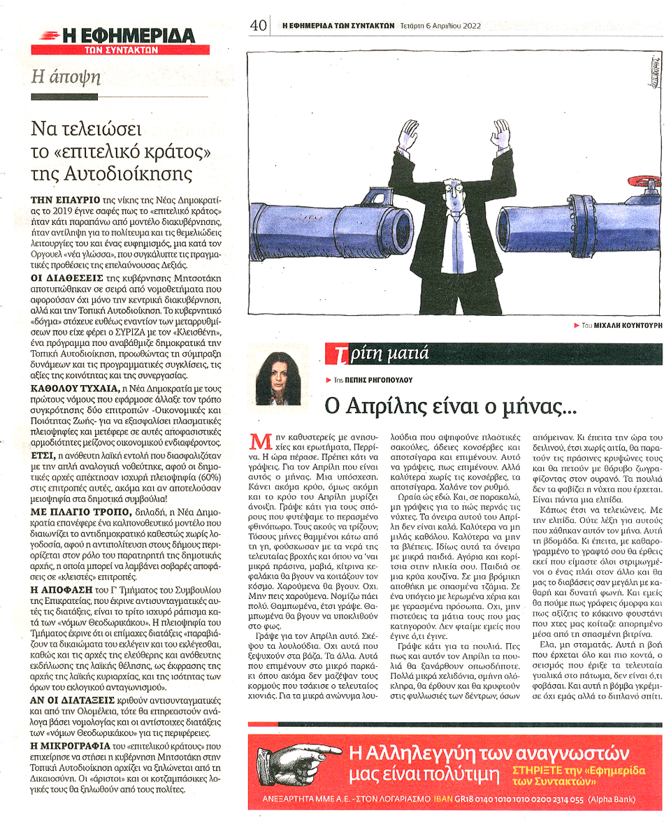 Η ΕΦΗΜΕΡΙΔΑ ΤΩΝ ΣΥΝΤΑΚΤΩΝ - 6 Απριλίου 2022