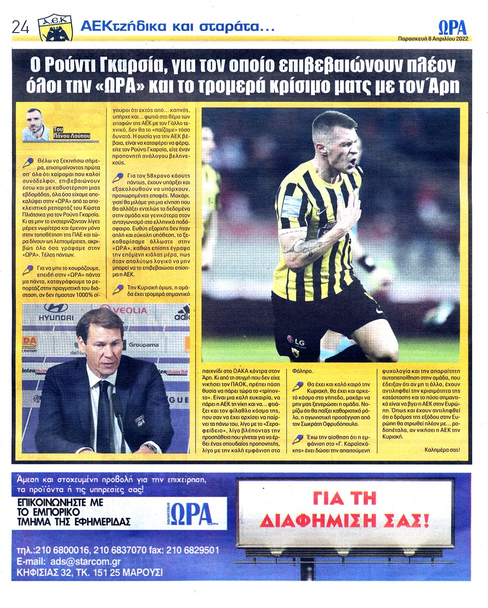ΑΘΛΗΤΙΚΗ ΩΡΑ ΤΩΝ ΣΠΟΡ - 8 Απριλίου 2022