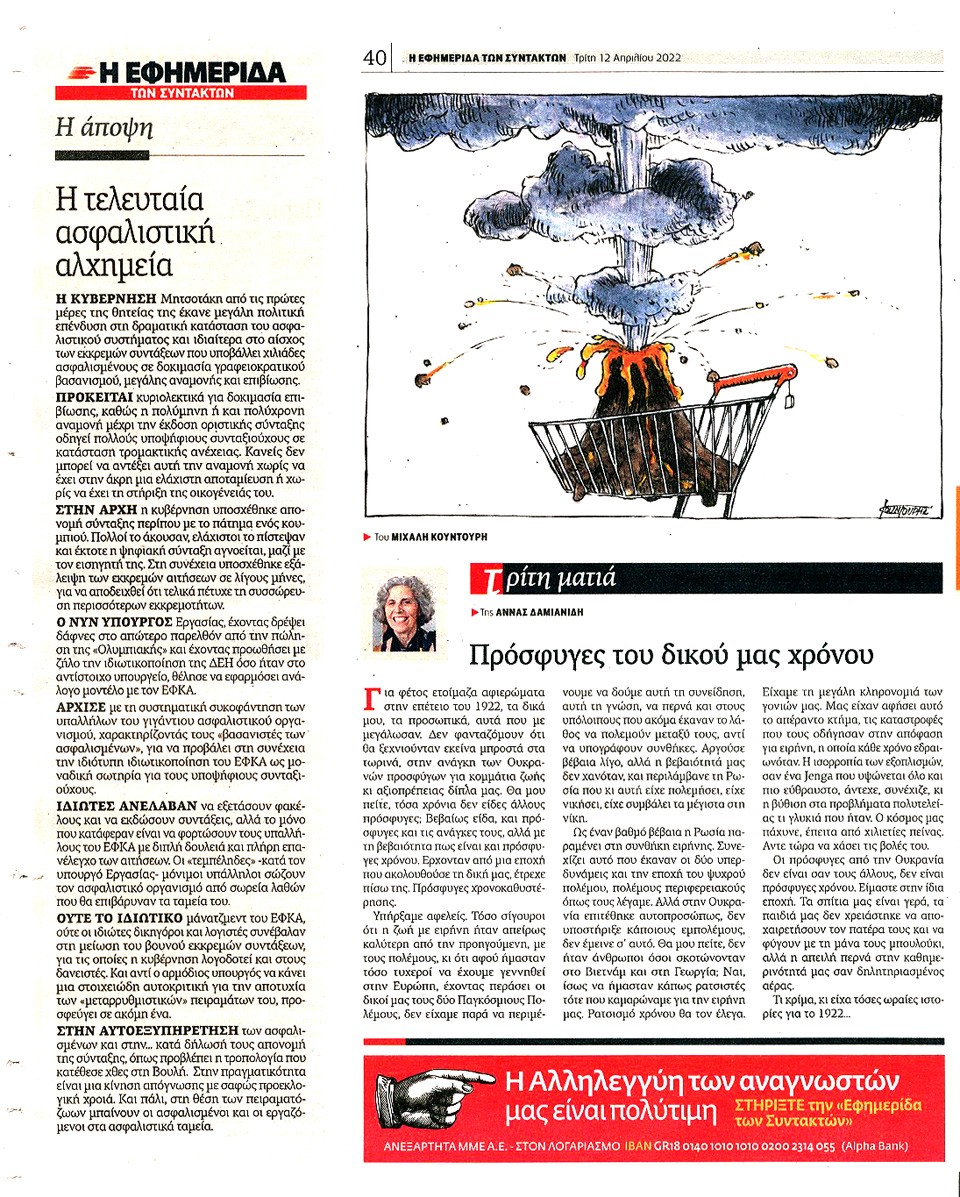 Η ΕΦΗΜΕΡΙΔΑ ΤΩΝ ΣΥΝΤΑΚΤΩΝ - 12 Απριλίου 2022