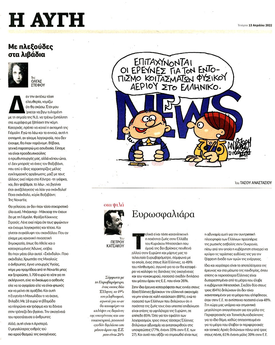 Η ΑΥΓΗ - 13 Απριλίου 2022
