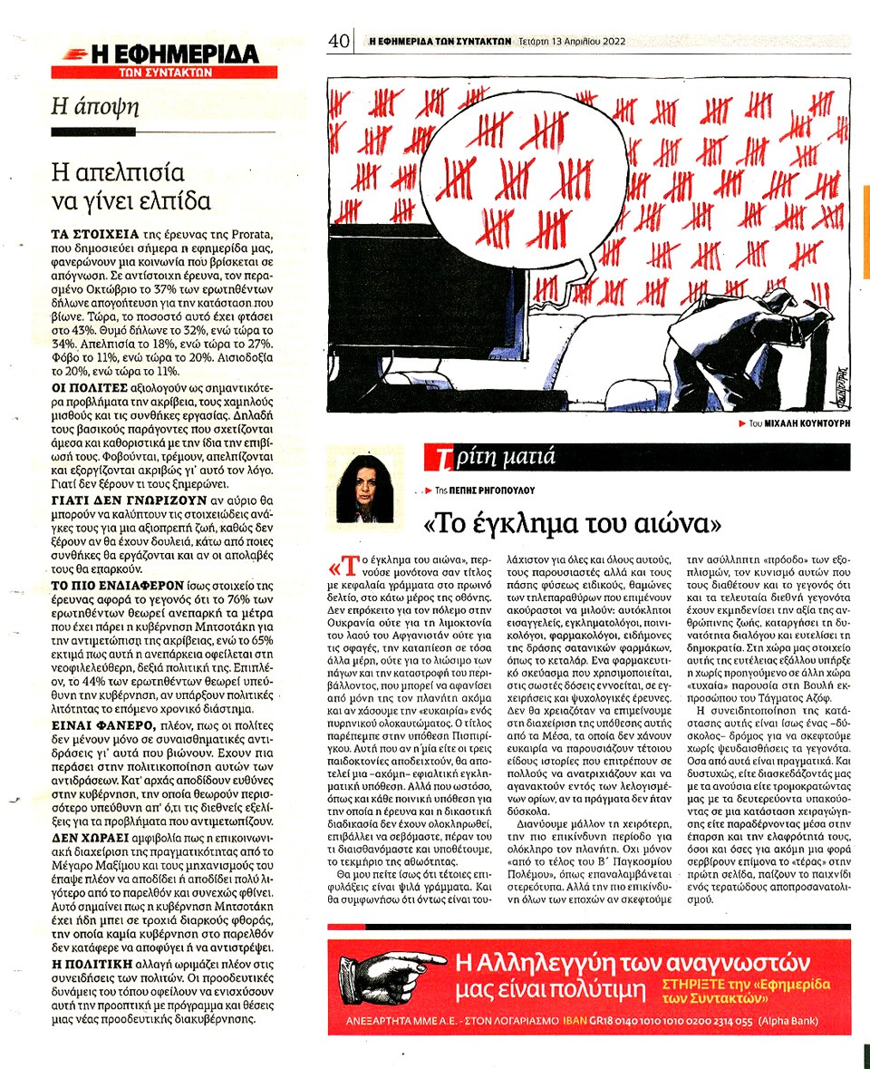Η ΕΦΗΜΕΡΙΔΑ ΤΩΝ ΣΥΝΤΑΚΤΩΝ - 13 Απριλίου 2022