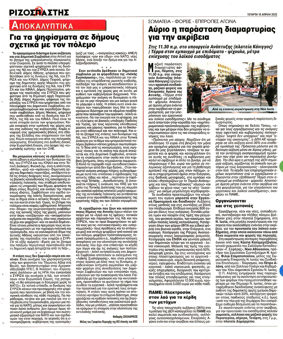 ΡΙΖΟΣΠΑΣΤΗΣ - 13 Απριλίου 2022