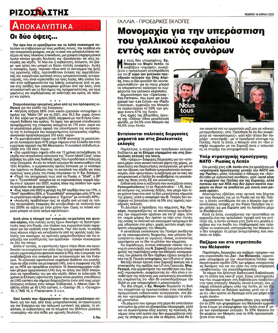 ΡΙΖΟΣΠΑΣΤΗΣ - 14 Απριλίου 2022