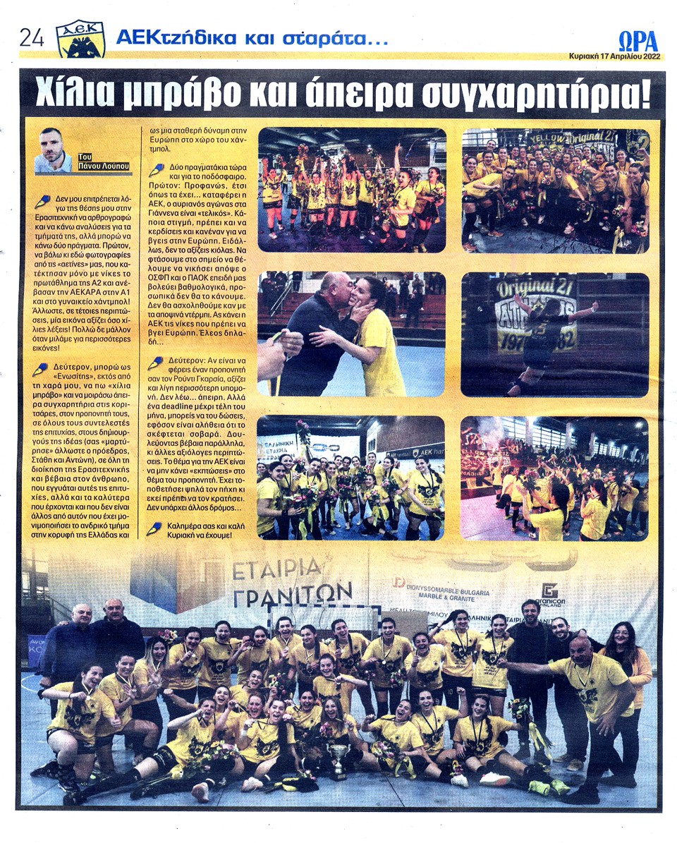 ΑΘΛΗΤΙΚΗ ΩΡΑ ΤΩΝ ΣΠΟΡ - 17 Απριλίου 2022