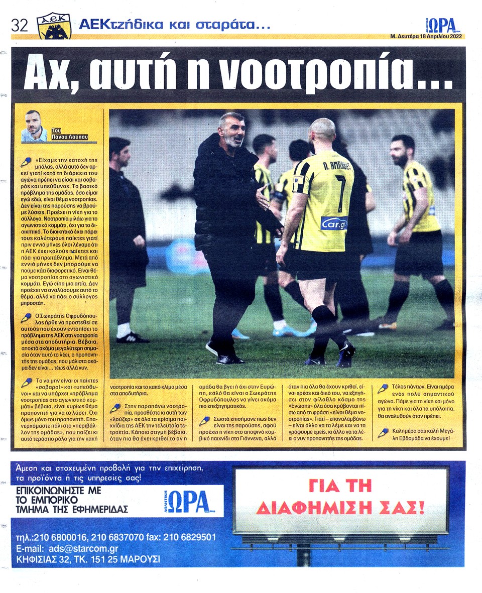 ΑΘΛΗΤΙΚΗ ΩΡΑ ΤΩΝ ΣΠΟΡ - 18 Απριλίου 2022