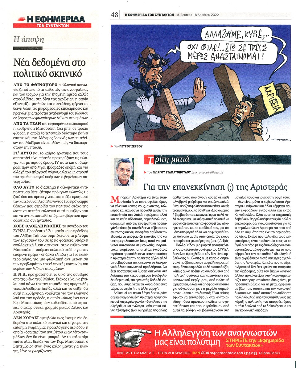 Η ΕΦΗΜΕΡΙΔΑ ΤΩΝ ΣΥΝΤΑΚΤΩΝ - 18 Απριλίου 2022