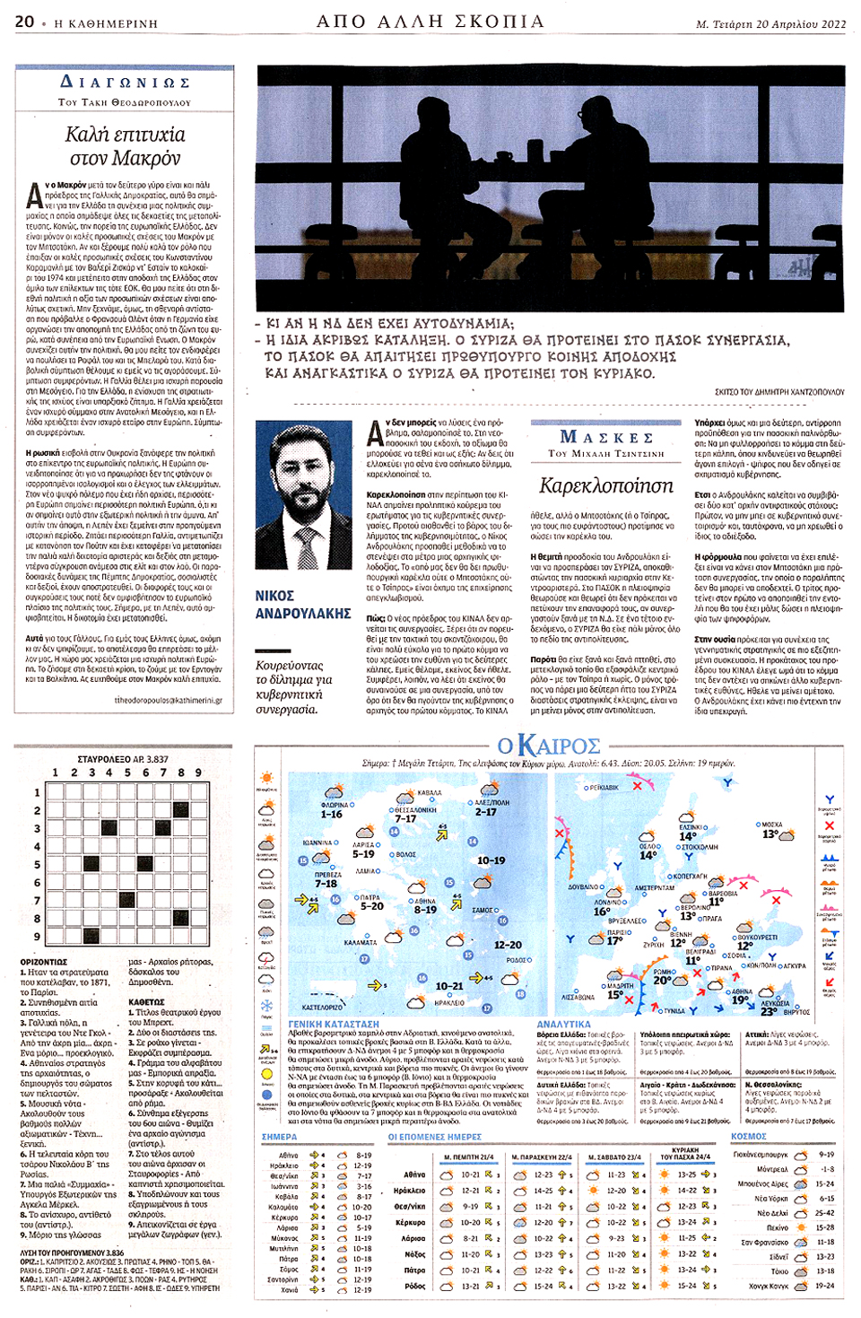 ΚΑΘΗΜΕΡΙΝΗ - 20 Απριλίου 2022