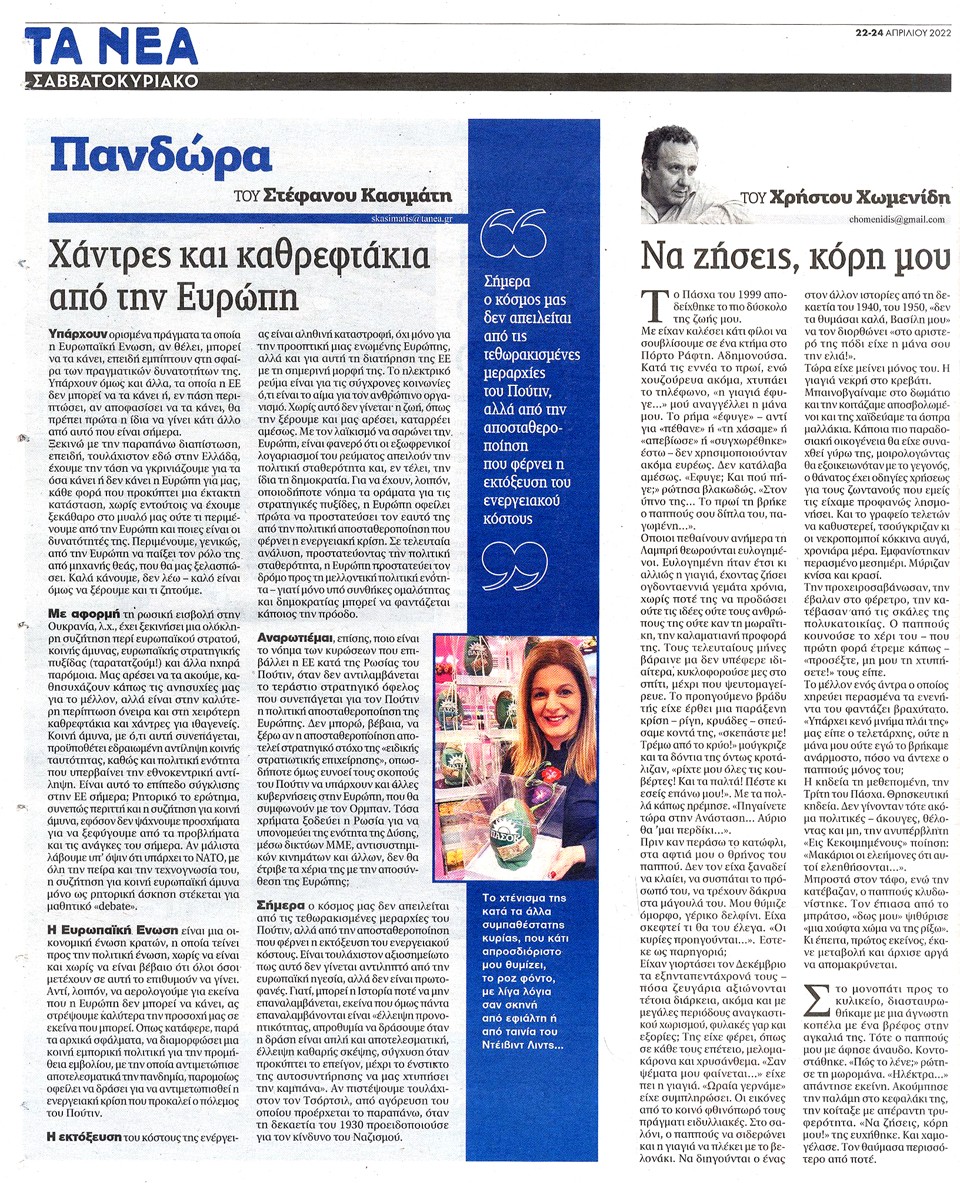 ΤΑ ΝΕΑ - 22 Απριλίου 2022