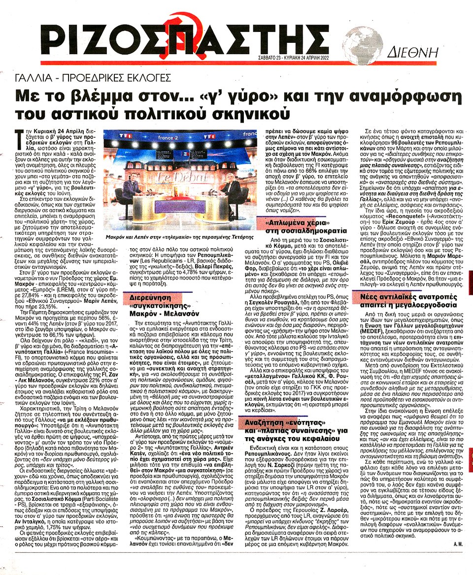 ΡΙΖΟΣΠΑΣΤΗΣ - 23 Απριλίου 2022