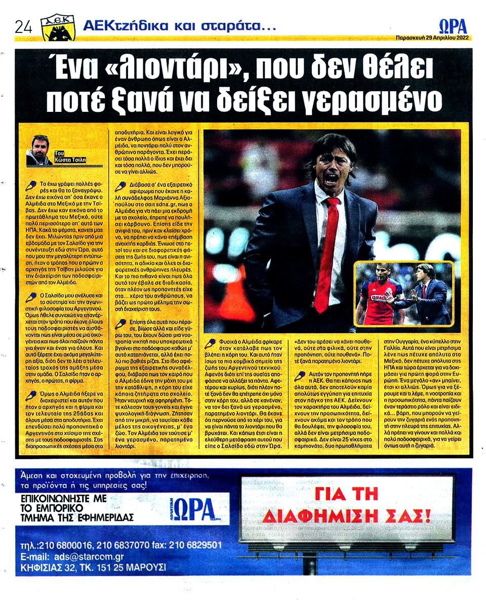 ΑΘΛΗΤΙΚΗ ΩΡΑ ΤΩΝ ΣΠΟΡ - 29 Απριλίου 2022