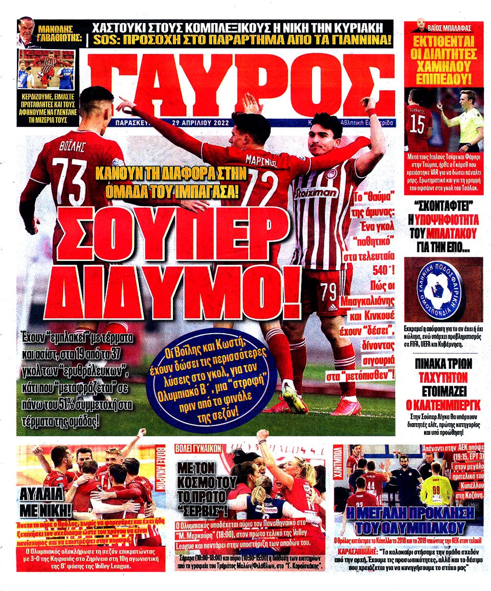 ΠΡΩΤΑΘΛΗΤΗΣ - 29 Απριλίου 2022