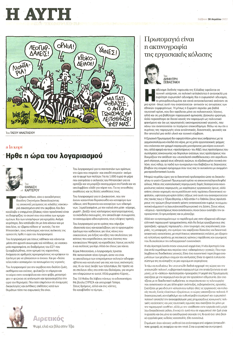 Η ΑΥΓΗ ΤΗΣ ΚΥΡΙΑΚΗΣ - 30 Απριλίου 2022