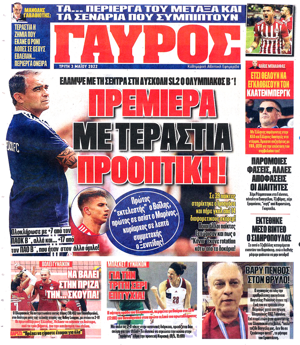 ΠΡΩΤΑΘΛΗΤΗΣ - 3 Μαΐου 2022