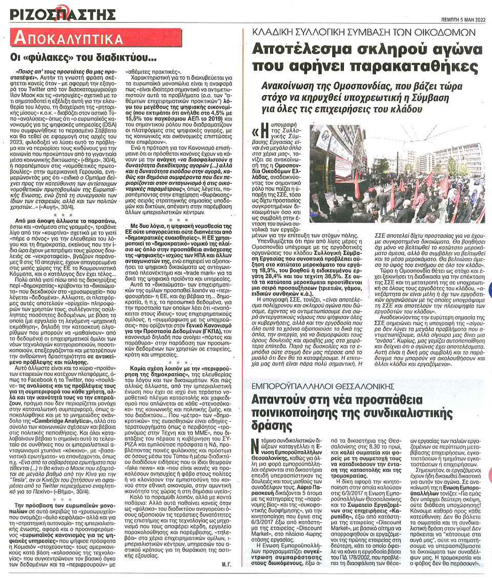 ΡΙΖΟΣΠΑΣΤΗΣ - 5 Μαΐου 2022