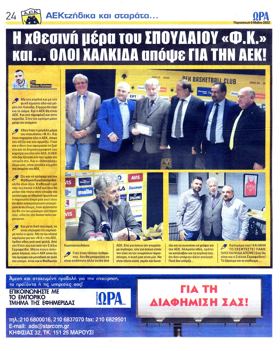 ΑΘΛΗΤΙΚΗ ΩΡΑ ΤΩΝ ΣΠΟΡ - 6 Μαΐου 2022