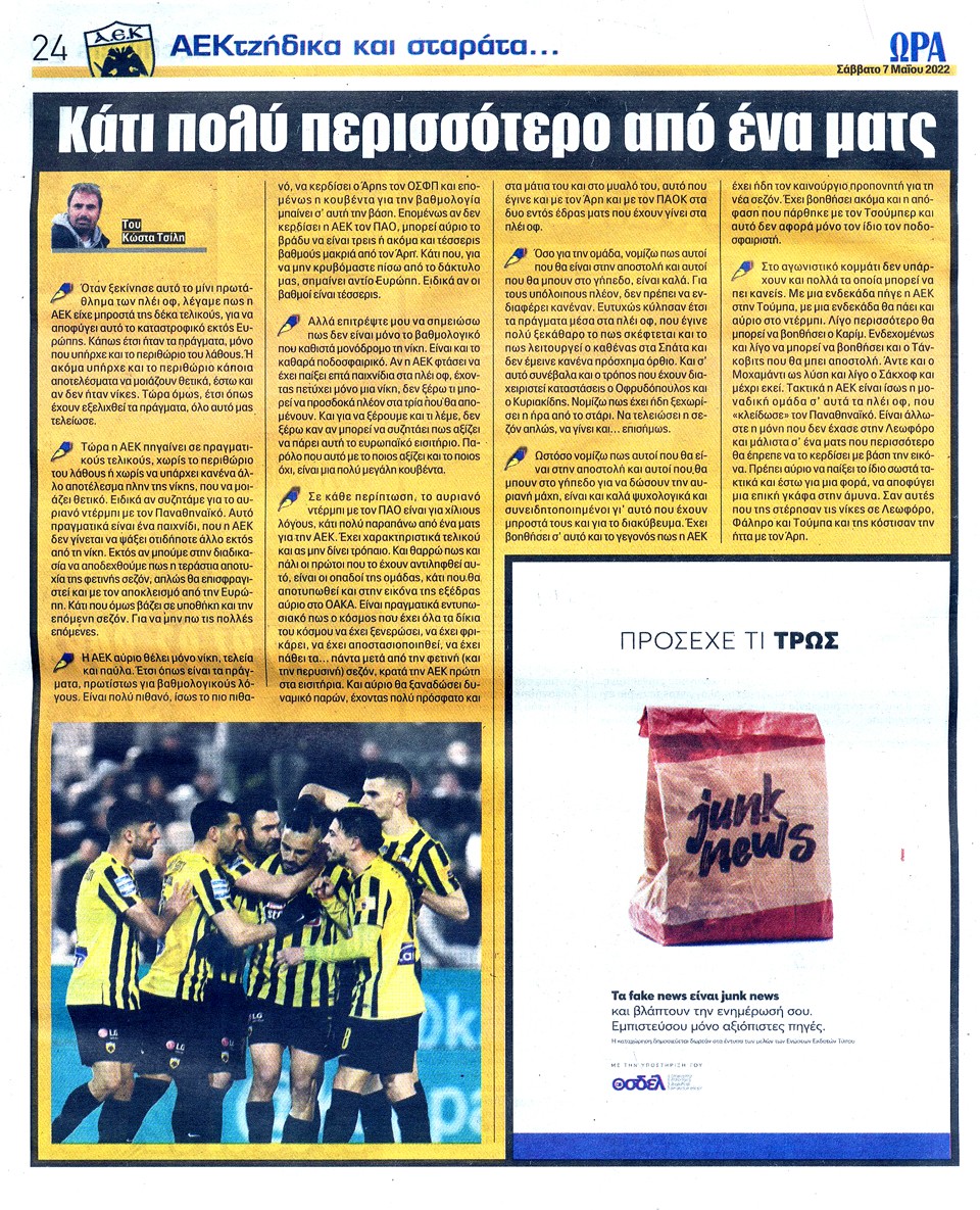 ΑΘΛΗΤΙΚΗ ΩΡΑ ΤΩΝ ΣΠΟΡ - 7 Μαΐου 2022