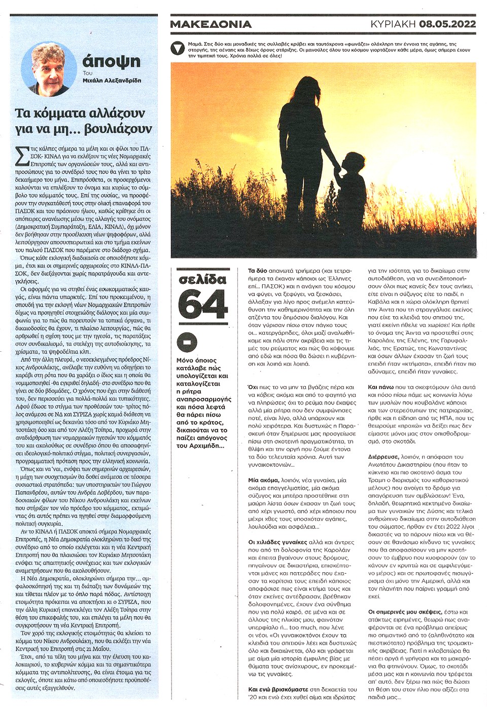 ΜΑΚΕΔΟΝΙΑ ΤΗΣ ΚΥΡΙΑΚΗΣ - 8 Μαΐου 2022