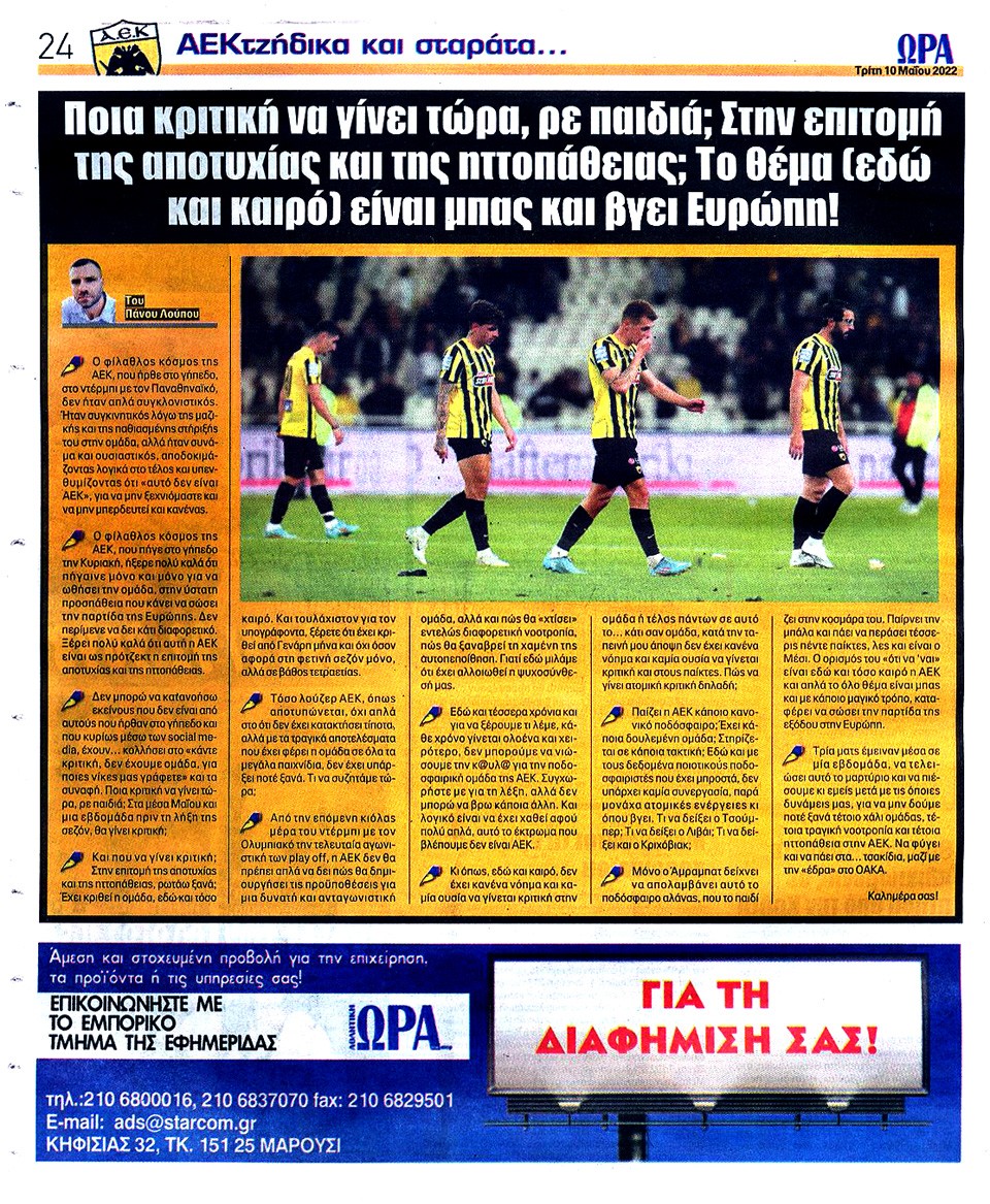 ΑΘΛΗΤΙΚΗ ΩΡΑ ΤΩΝ ΣΠΟΡ - 10 Μαΐου 2022