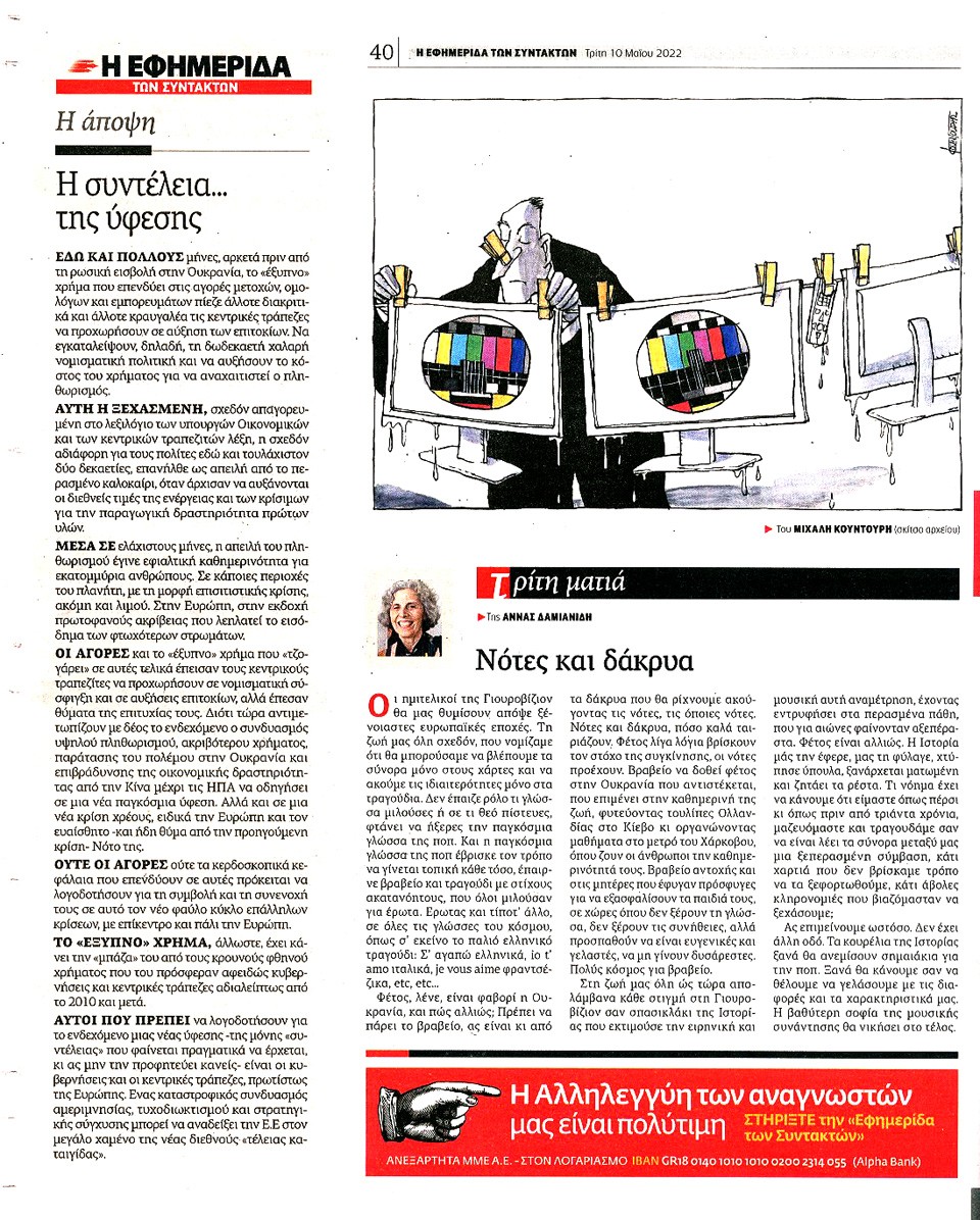 Η ΕΦΗΜΕΡΙΔΑ ΤΩΝ ΣΥΝΤΑΚΤΩΝ - 10 Μαΐου 2022